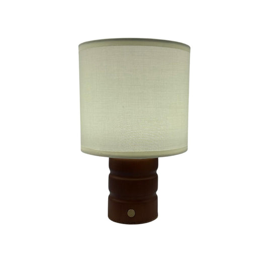 Small Deco Cone Ribbed Teak style rechargeable touch lamp