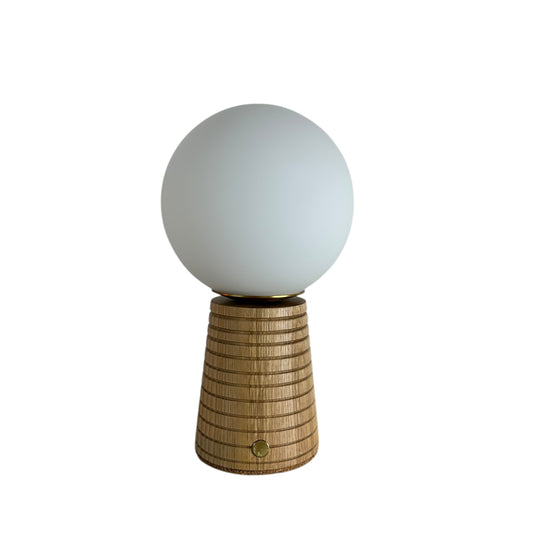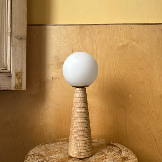 Small Deco Cone Ribbed Beech style rechargeable touch lamp