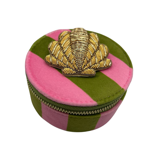 Jewellery Travel Pot in pink stripe - Shell brooch