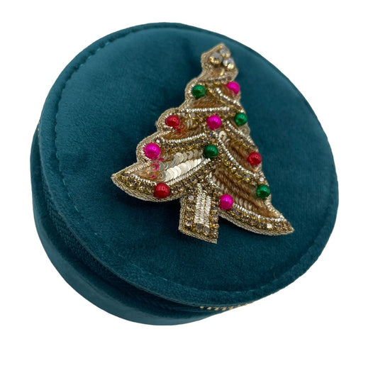 Jewellery Travel Pot in Teal recycled velvet, with Kitsch Tree