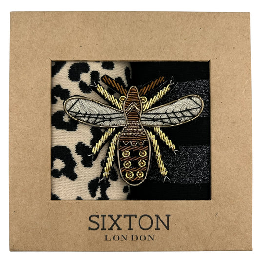 Ivy Leopard & Moss Vegas sock box duo with embroidered brooch