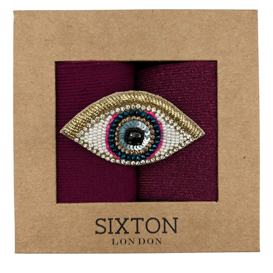 Fuchsia Vegas & Sienna sock box duo with embroidered brooch