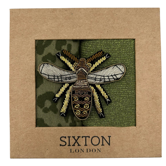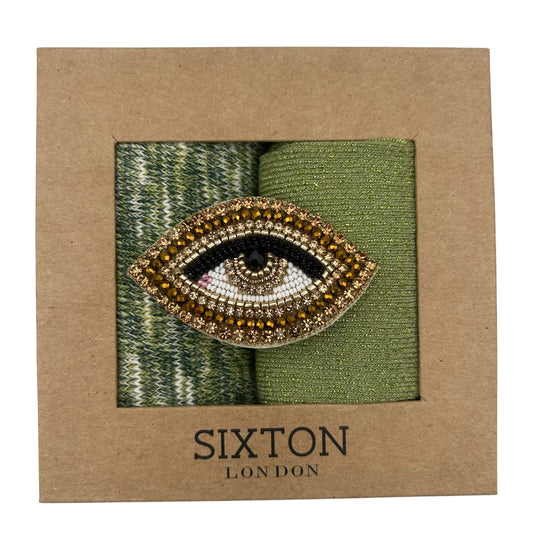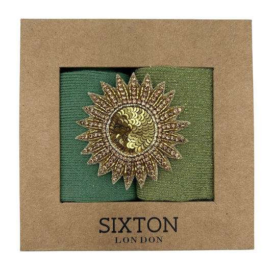 Sage Sienna & Pistachio Vegas sock box duo with embroidered brooch