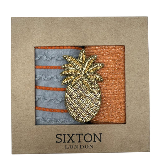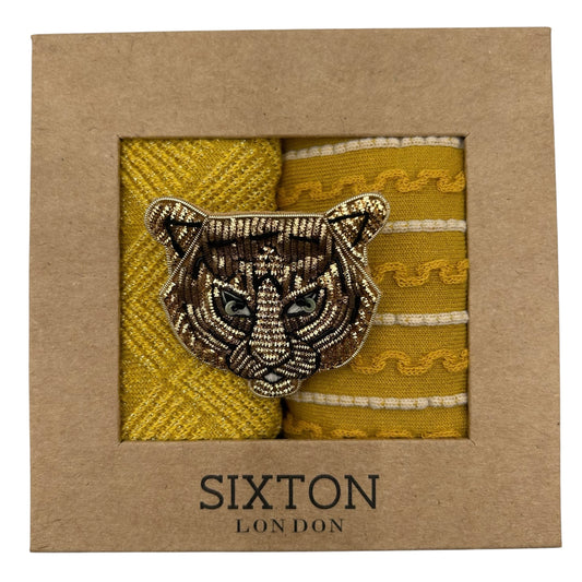 Grey Lyon & Orange Vegas sock box duo with embroidered brooch