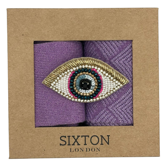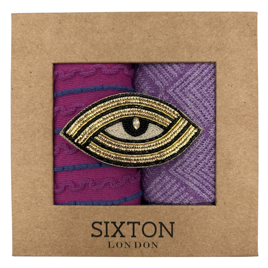 Lyon & Paris Purple sock box duo with embroidered brooch