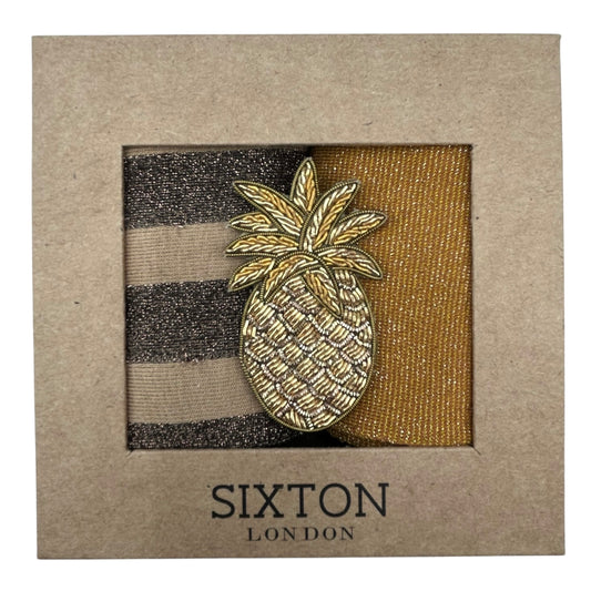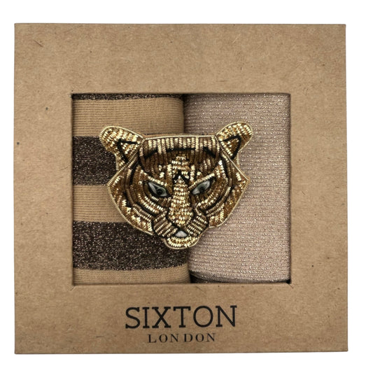 Sand Berlin & Champagne Vegas sock box duo with embroidered brooch
