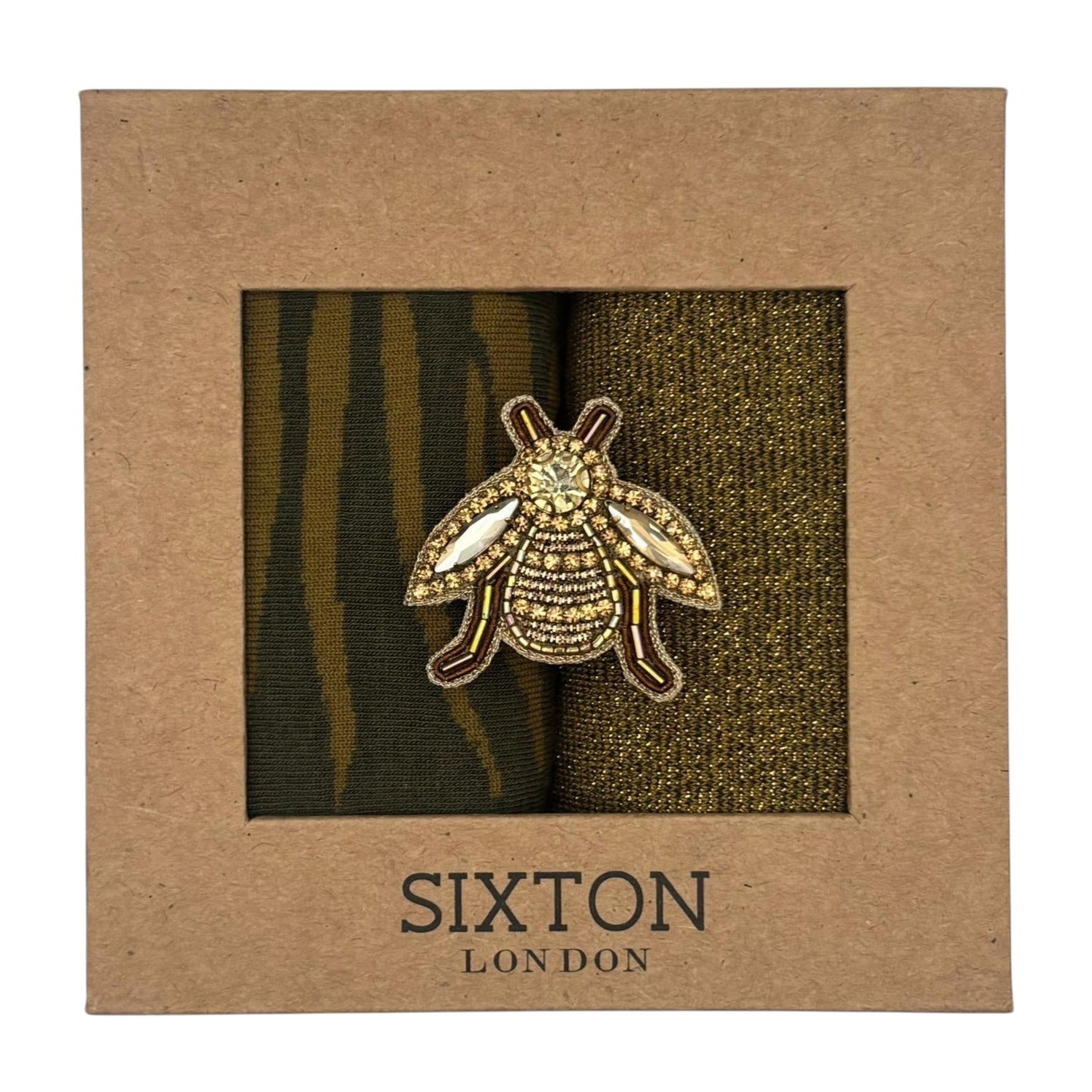 Ivy Savannah & Olive Tokyo sock box duo with embroidered brooch