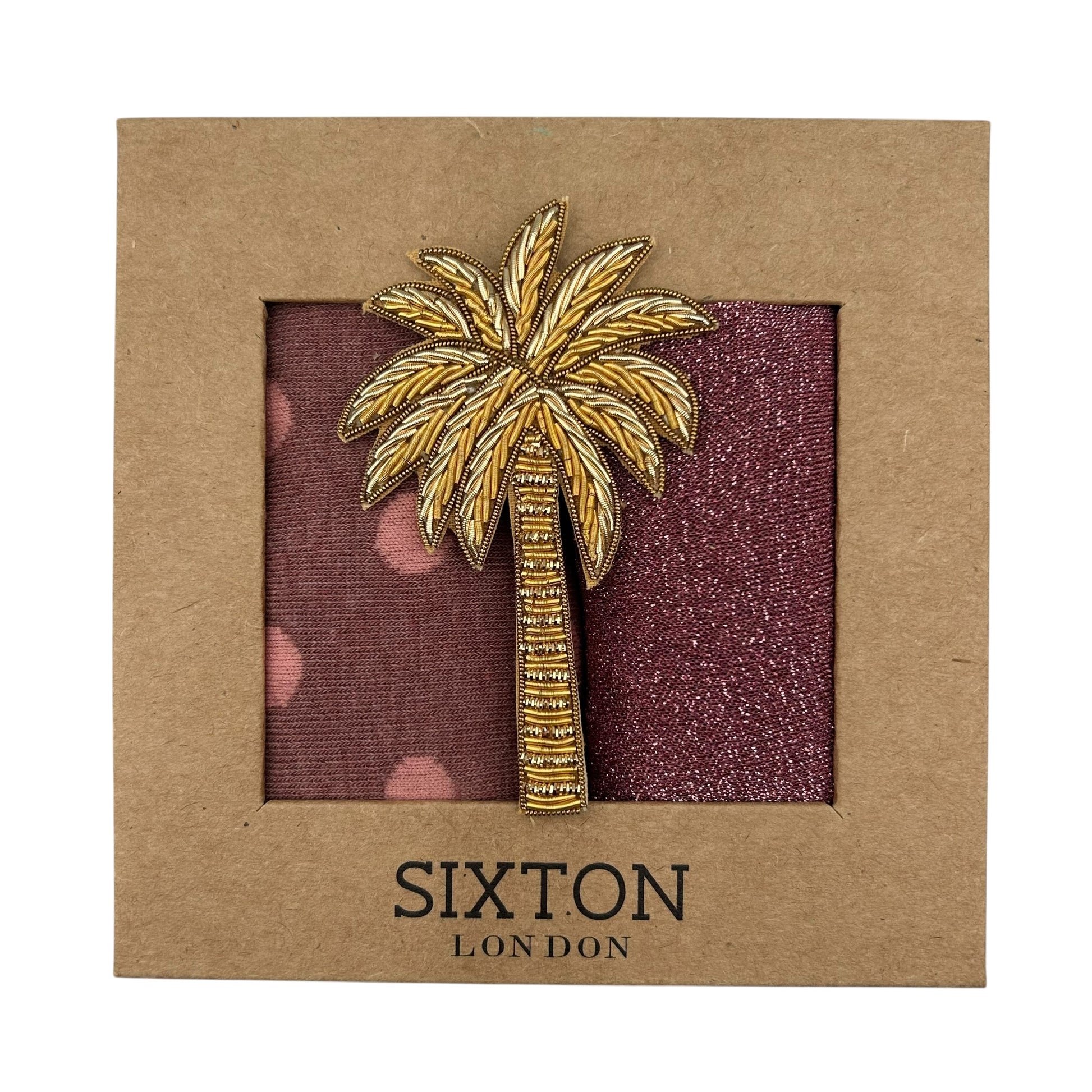 Pink Porto & Rio sock box duo with an embroidered brooch
