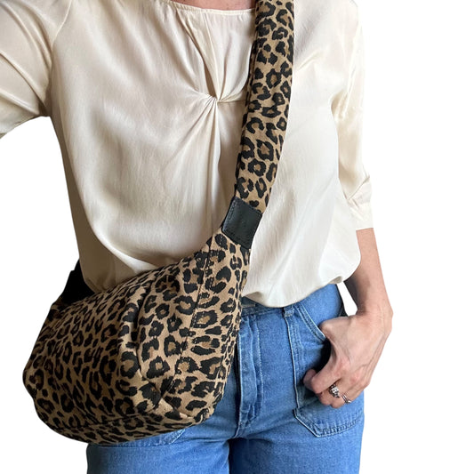 Brixton cross body sling bag - sand leopard print - large