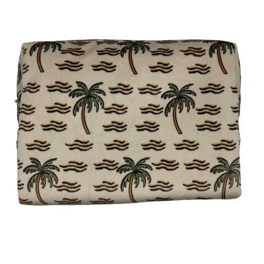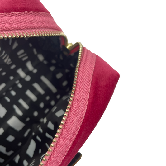 Pink stripe makeup bag with Pink Lightning Bolt brooch