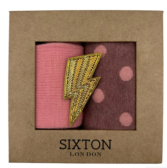 Seoul & Tokyo Pink sock box duo with embroidered brooch