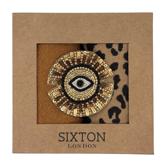 Ivy Kyoto & Leopard sock box duo with embroidered brooch