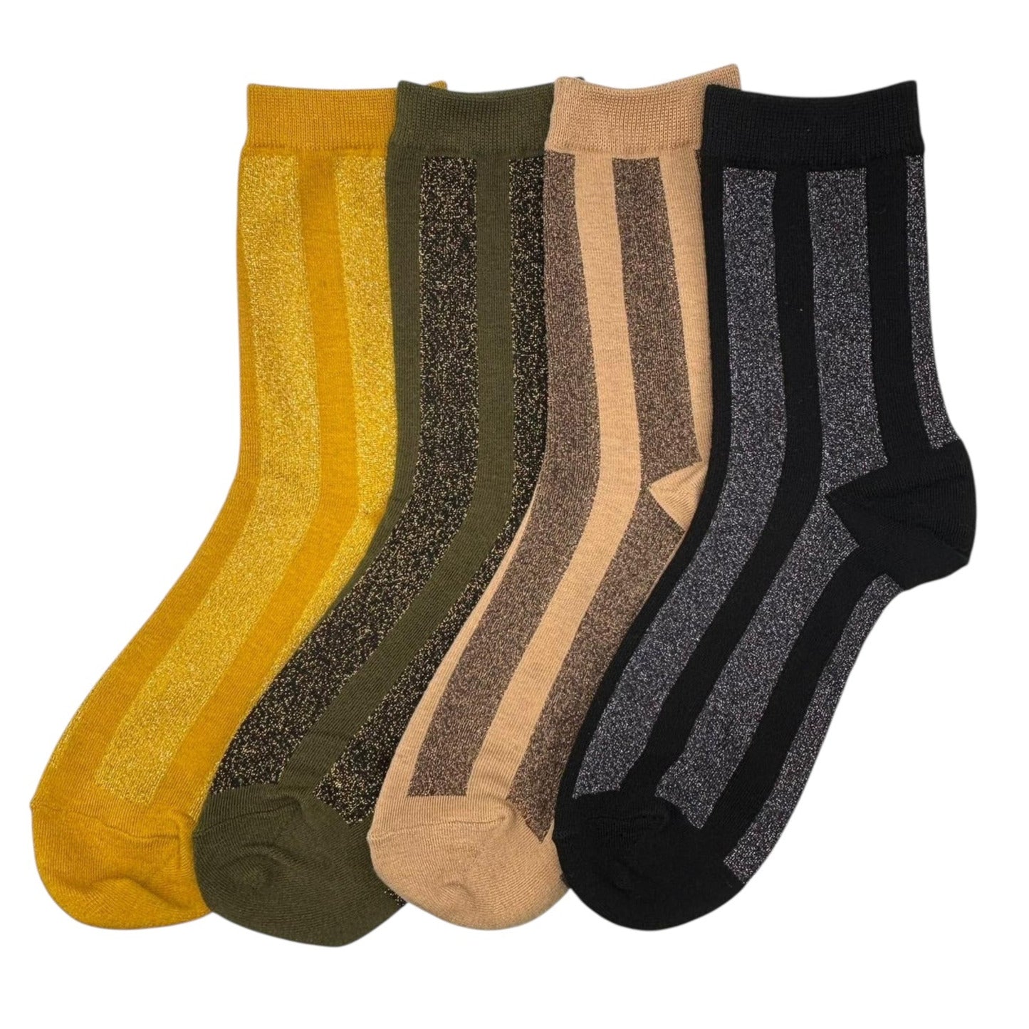 A pair of sparkly vertical stripe socks, available in six colours.