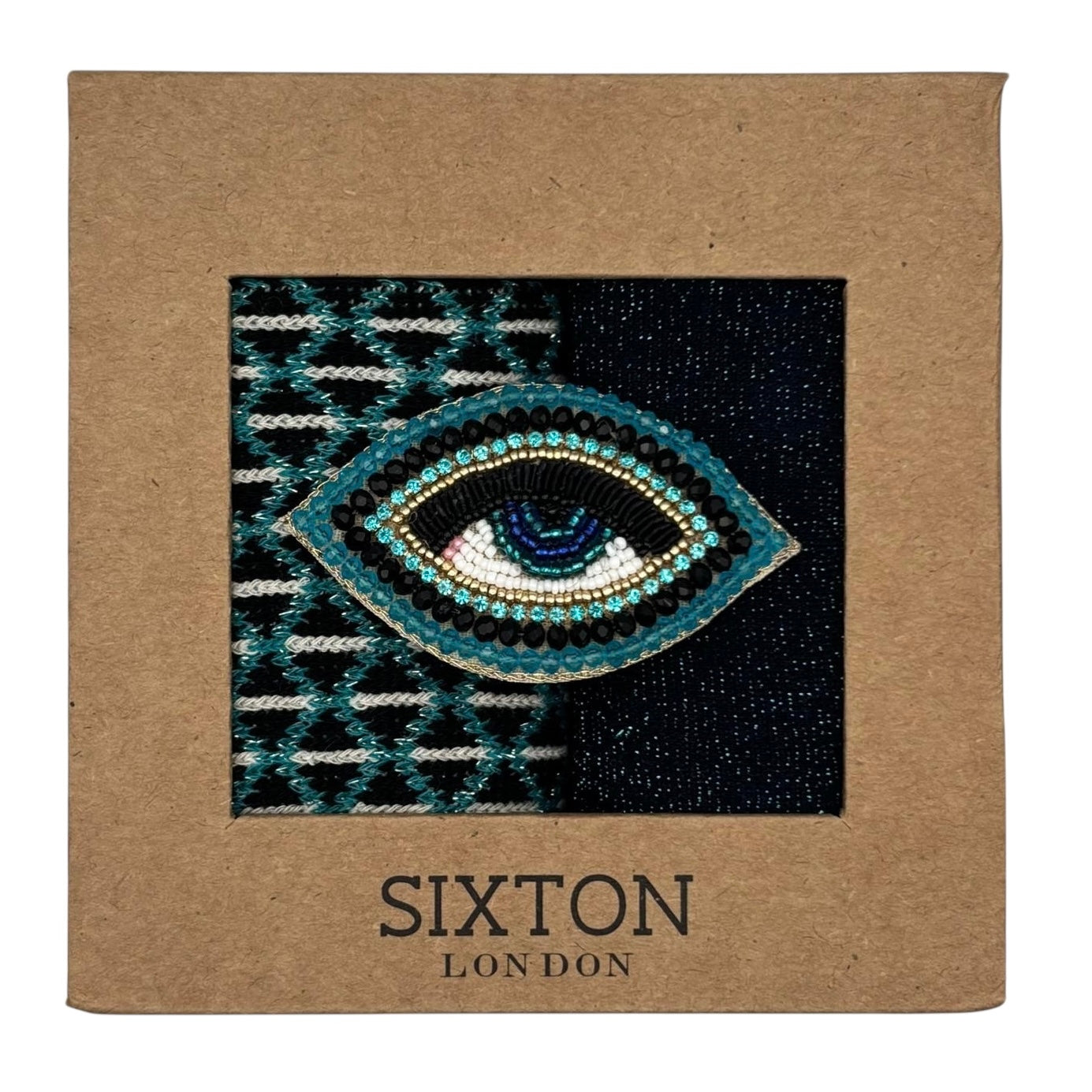 Black Leipzig & Midnight Tokyo sock box duo with embroidered brooch
