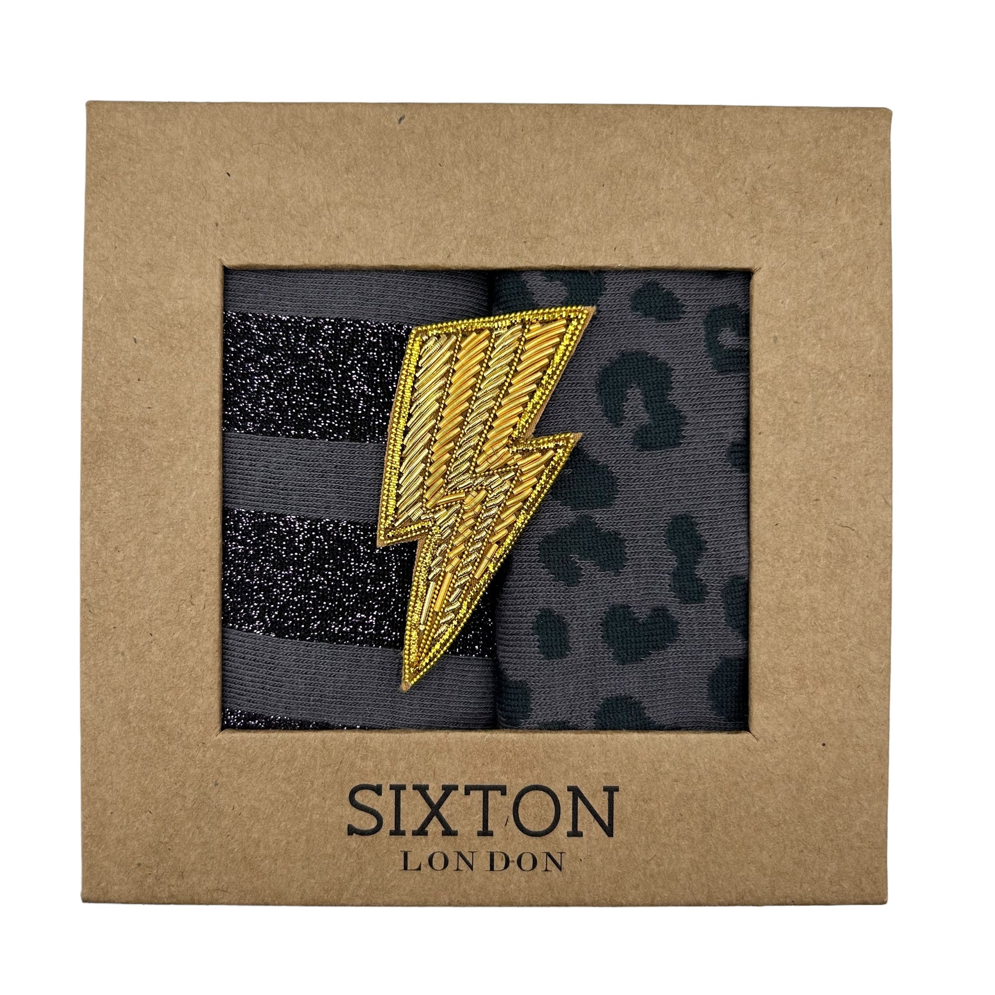 Charcoal Leopard & Purple Berlin sock box duo with pin