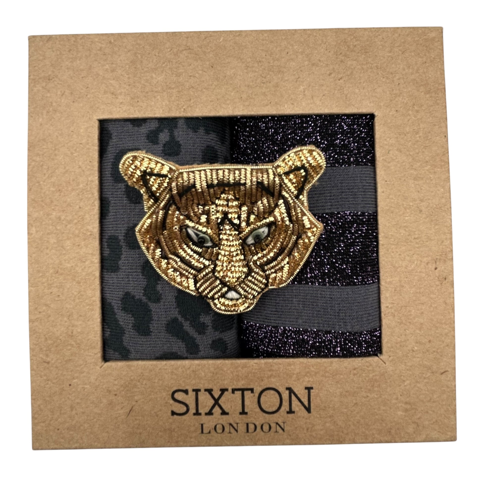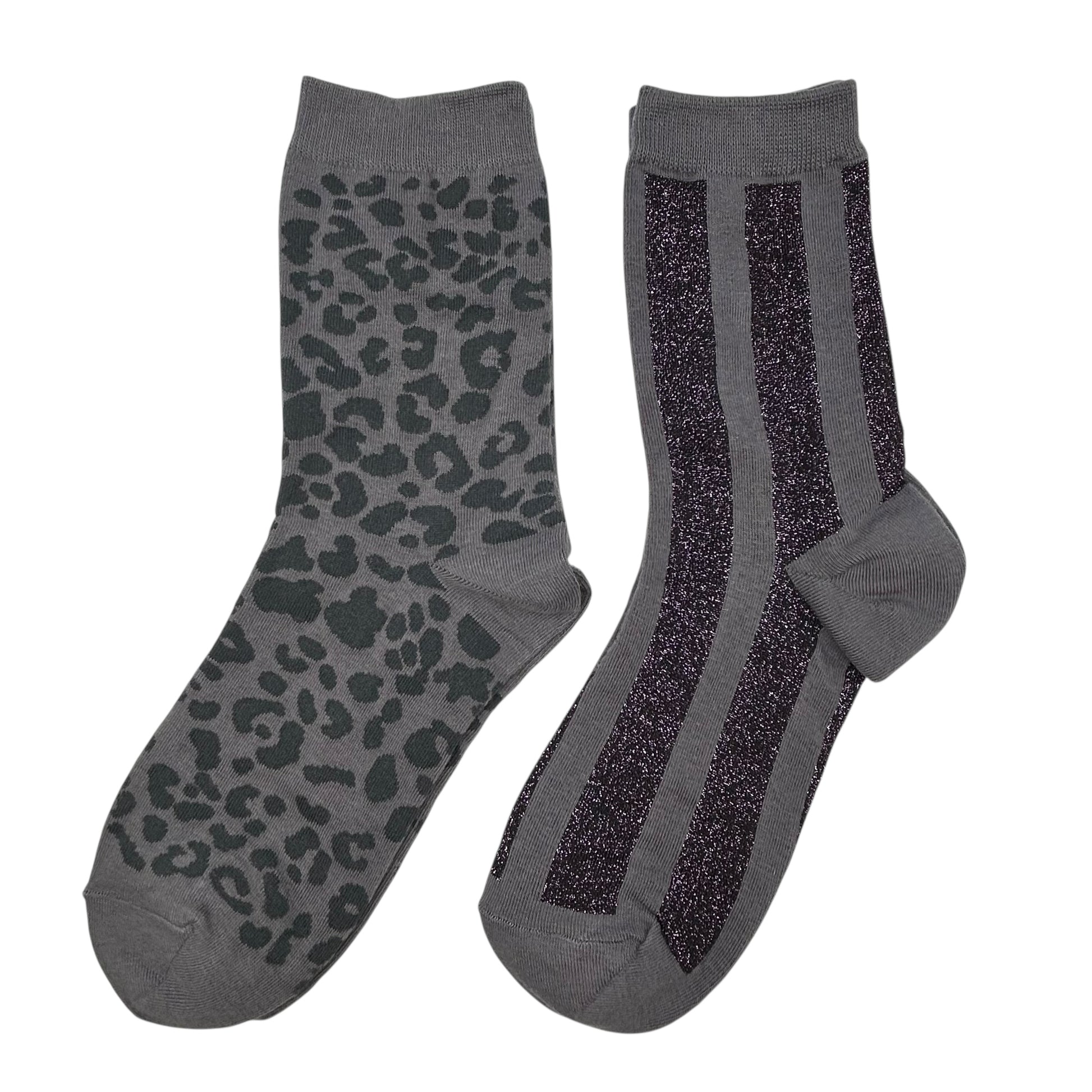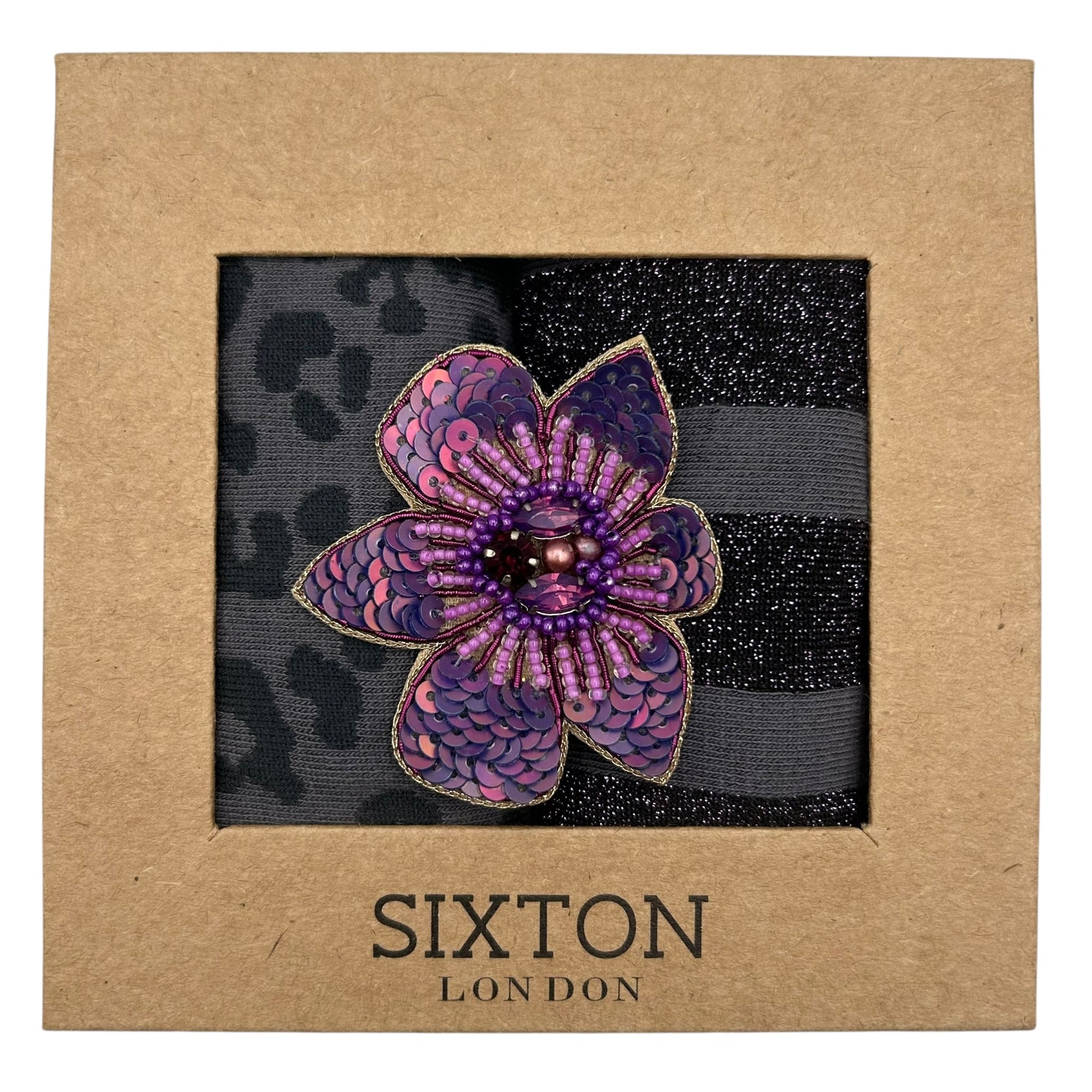 Charcoal Leopard & Purple Berlin sock box duo with pin