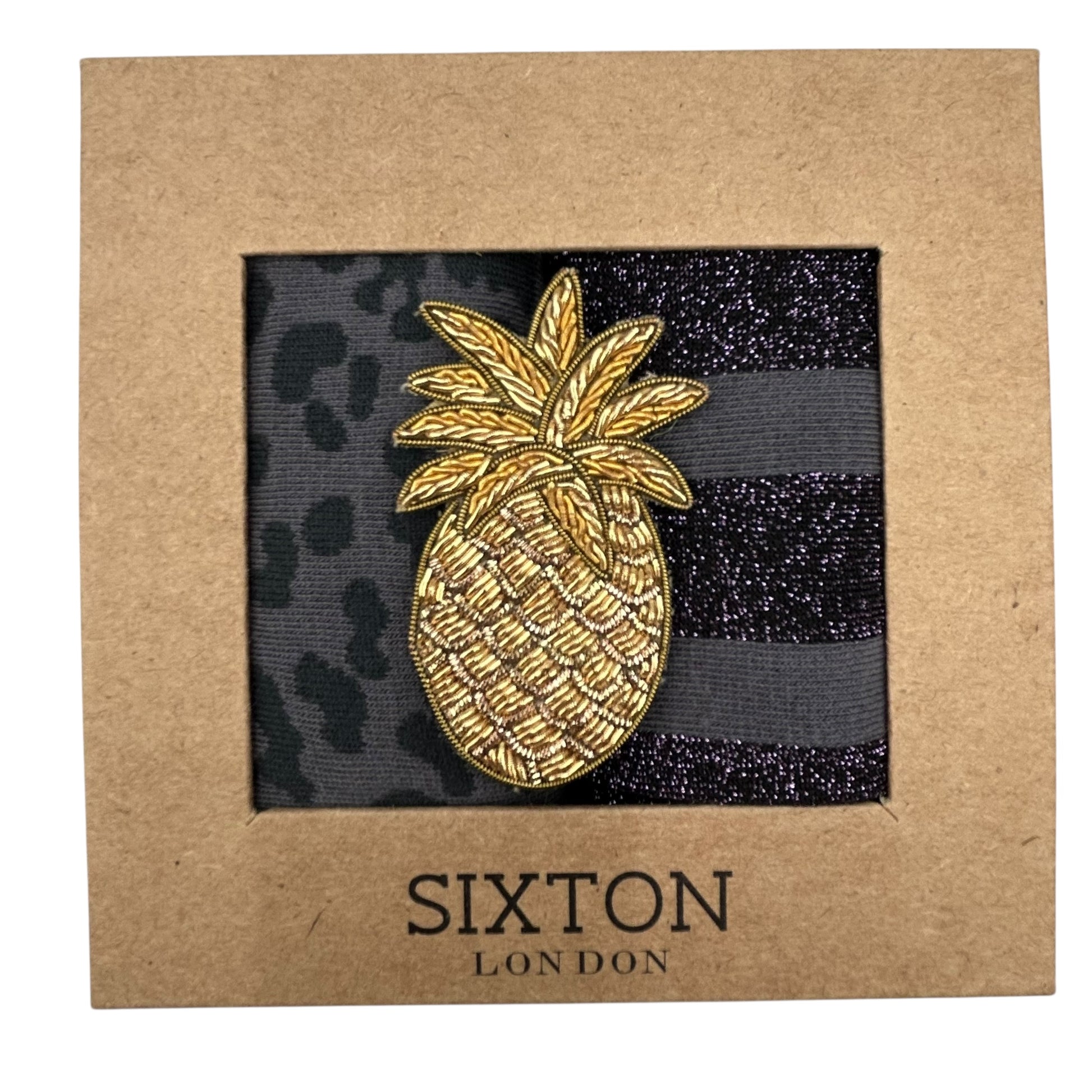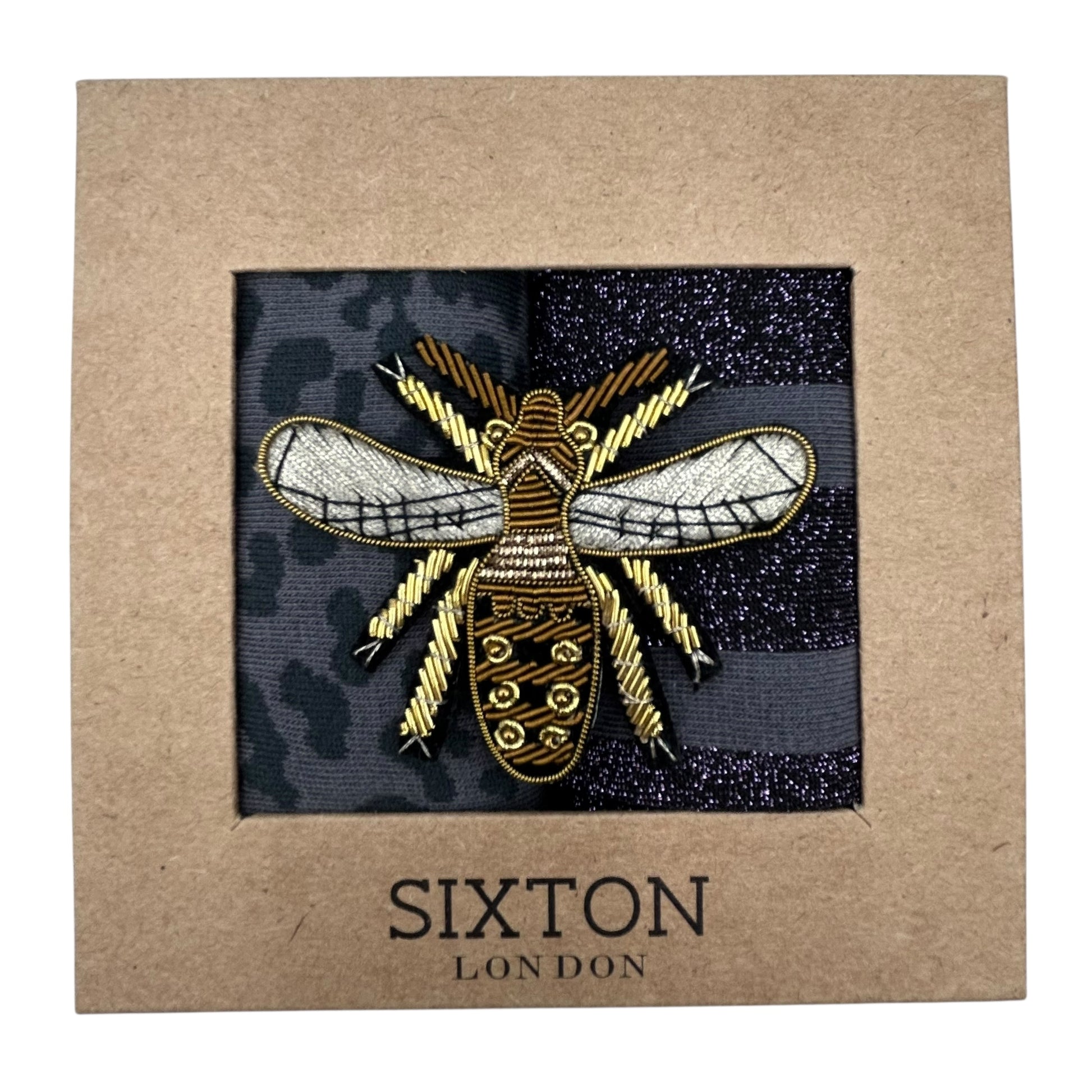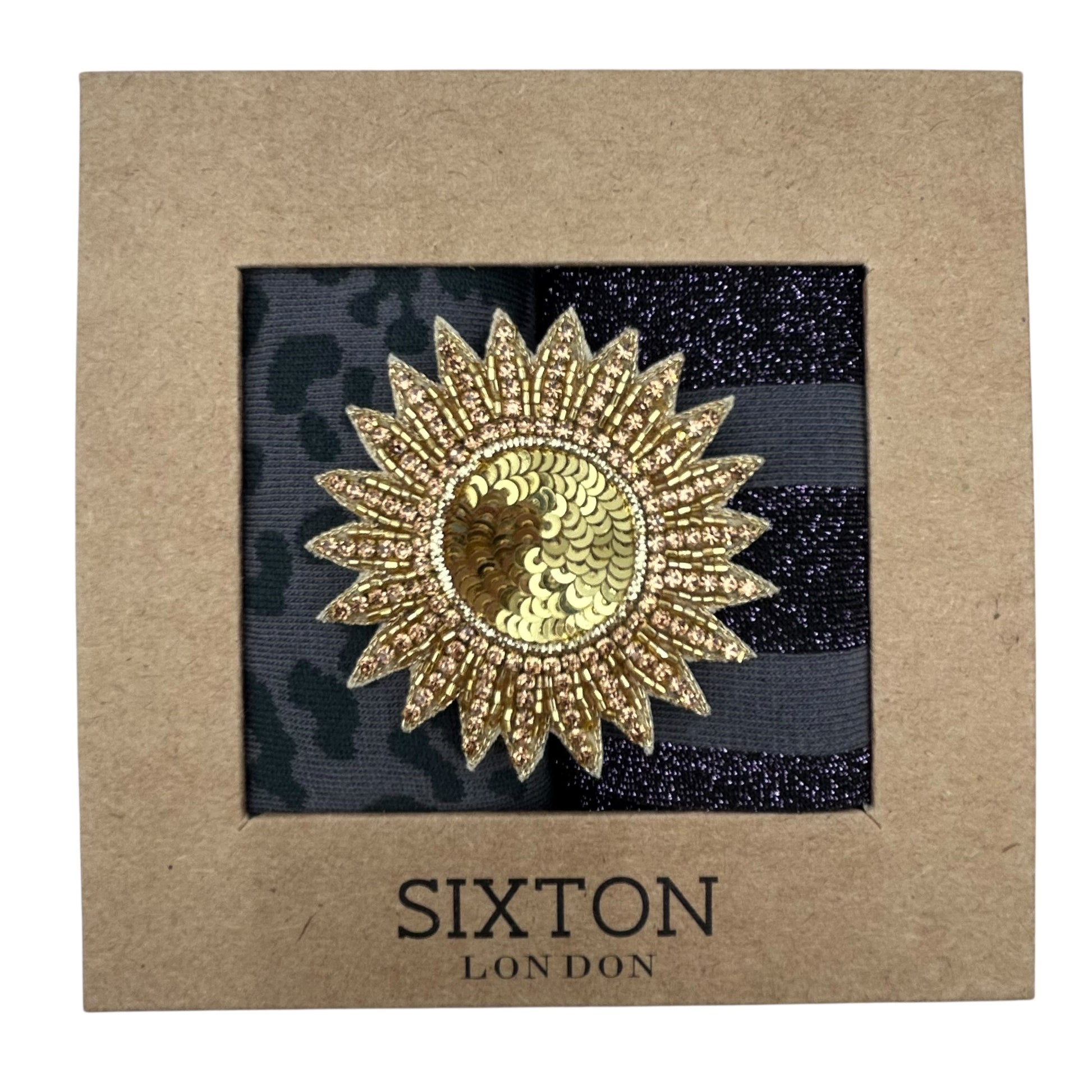 Charcoal Leopard & Purple Berlin sock box duo with pin