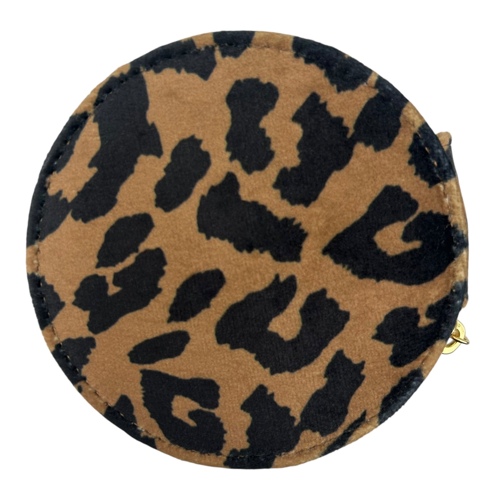 A gorgeous jewellery travel pot in luxurious leopard print, made from recycled materials.