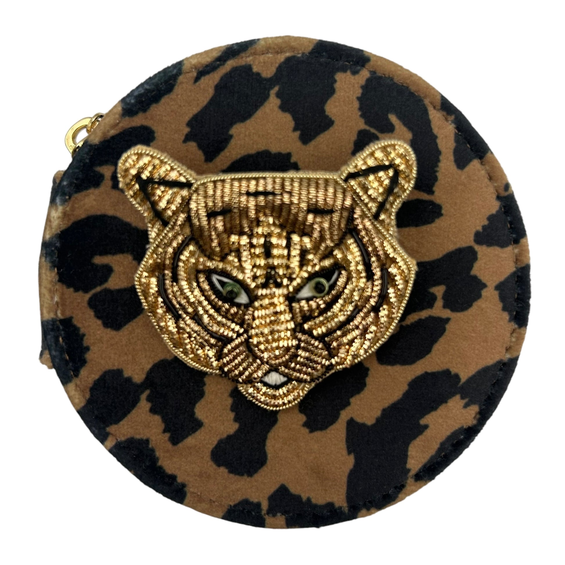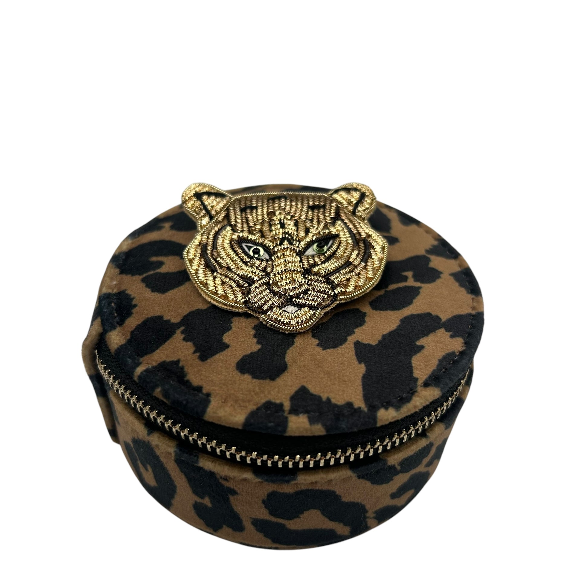 Jewellery Travel Pot in leopard print - Tiger Head pin