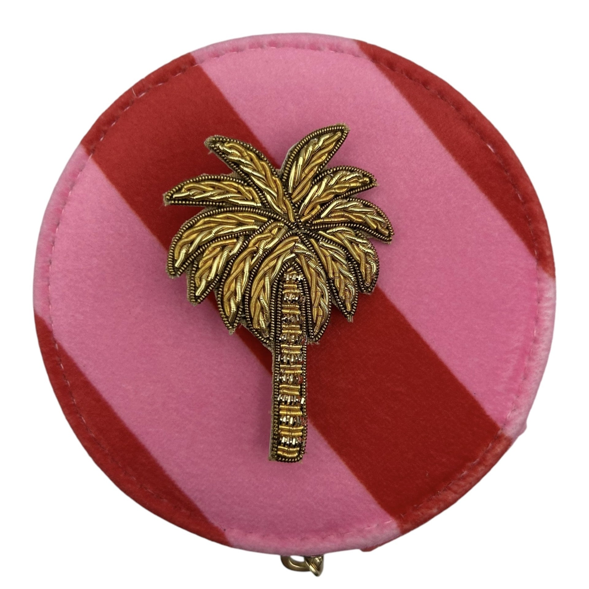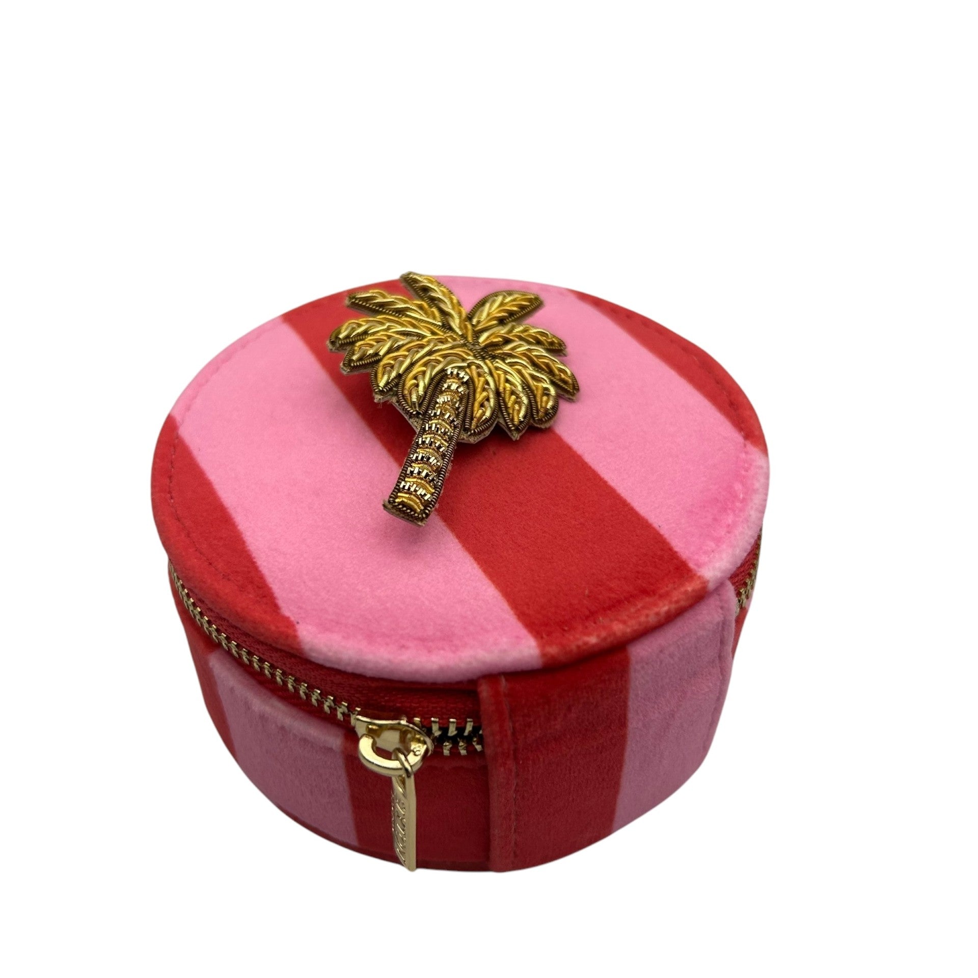 Jewellery Travel Pot in pink stripe - Palm Tree brooch