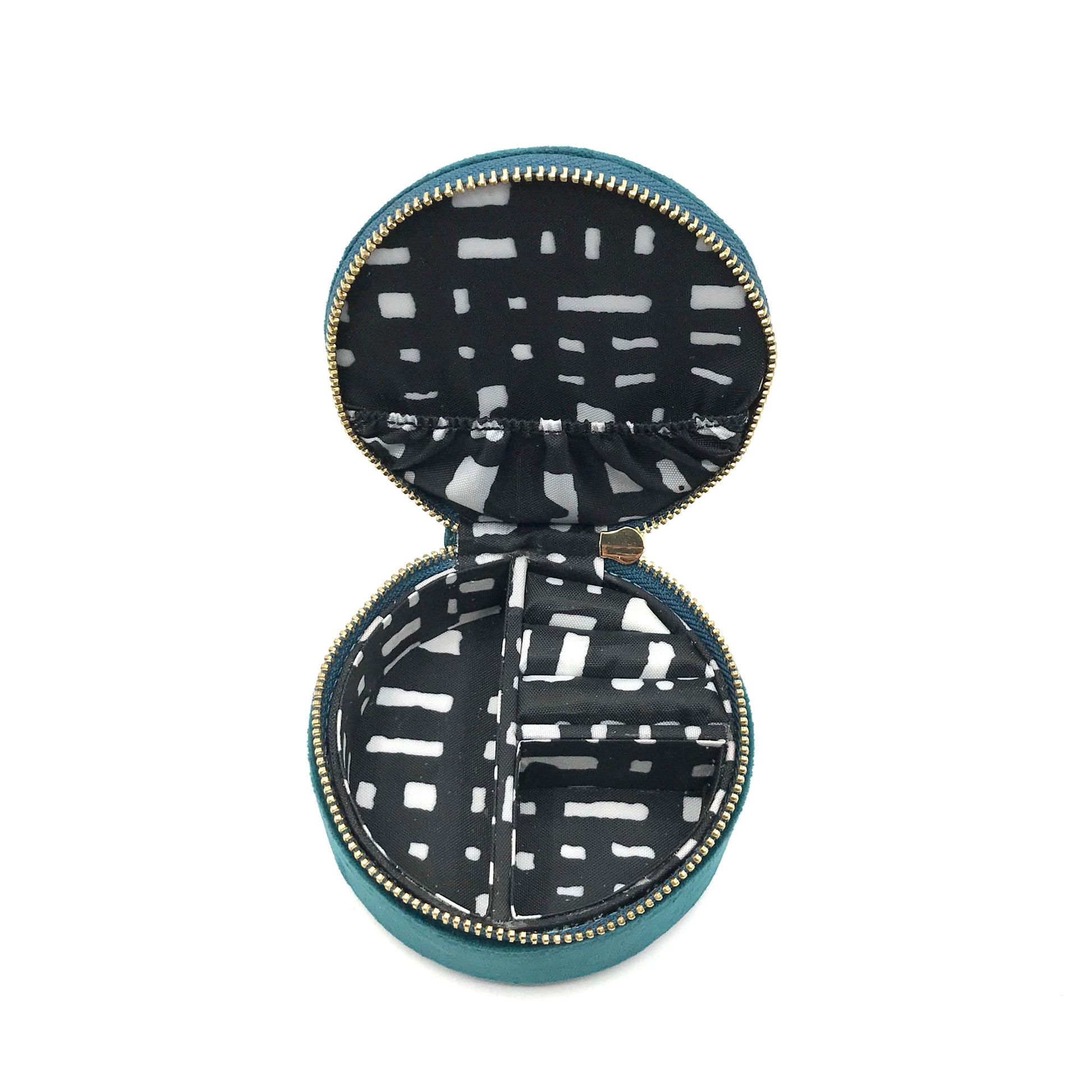 Jewellery Travel Pot in Teal recycled velvet, with Grand Insect