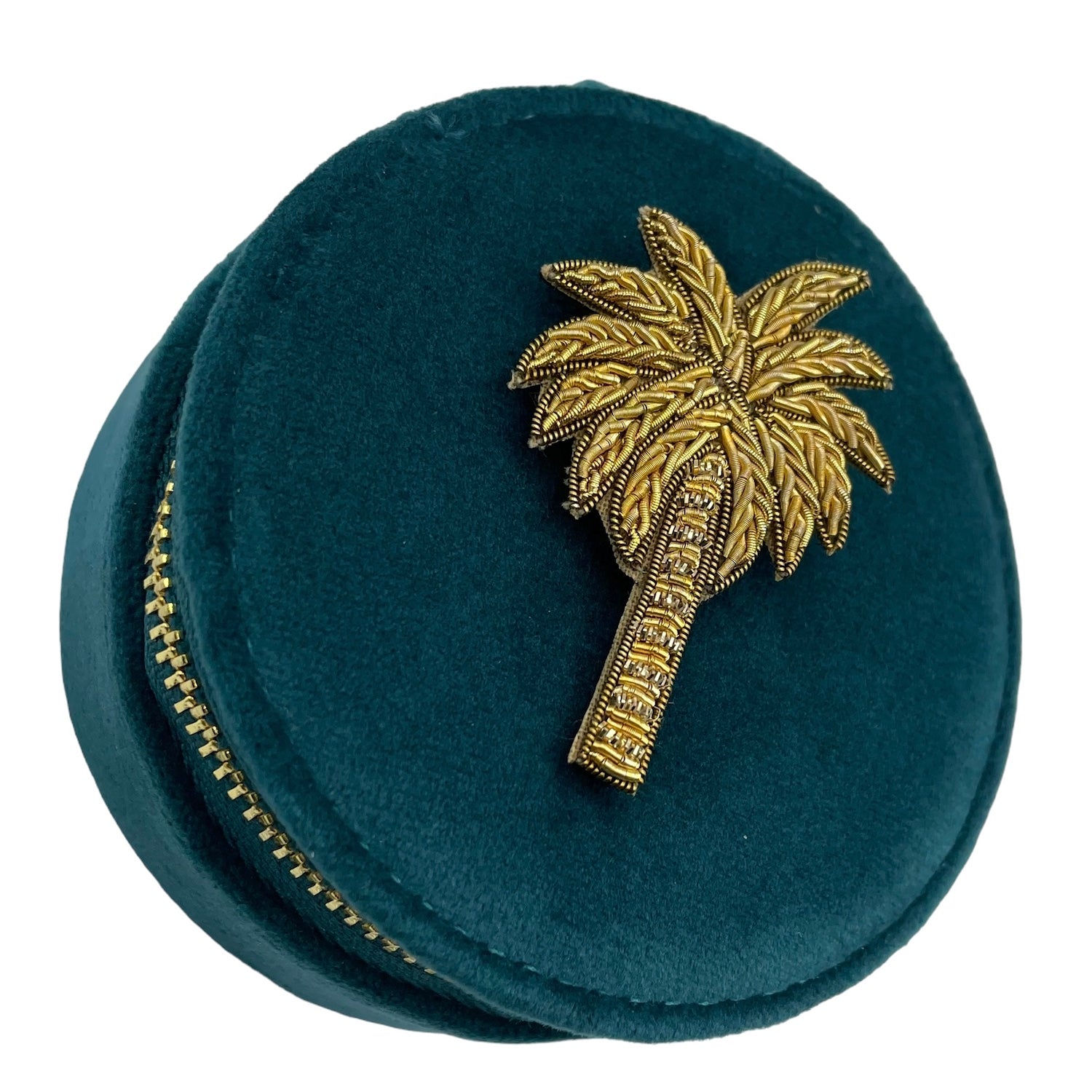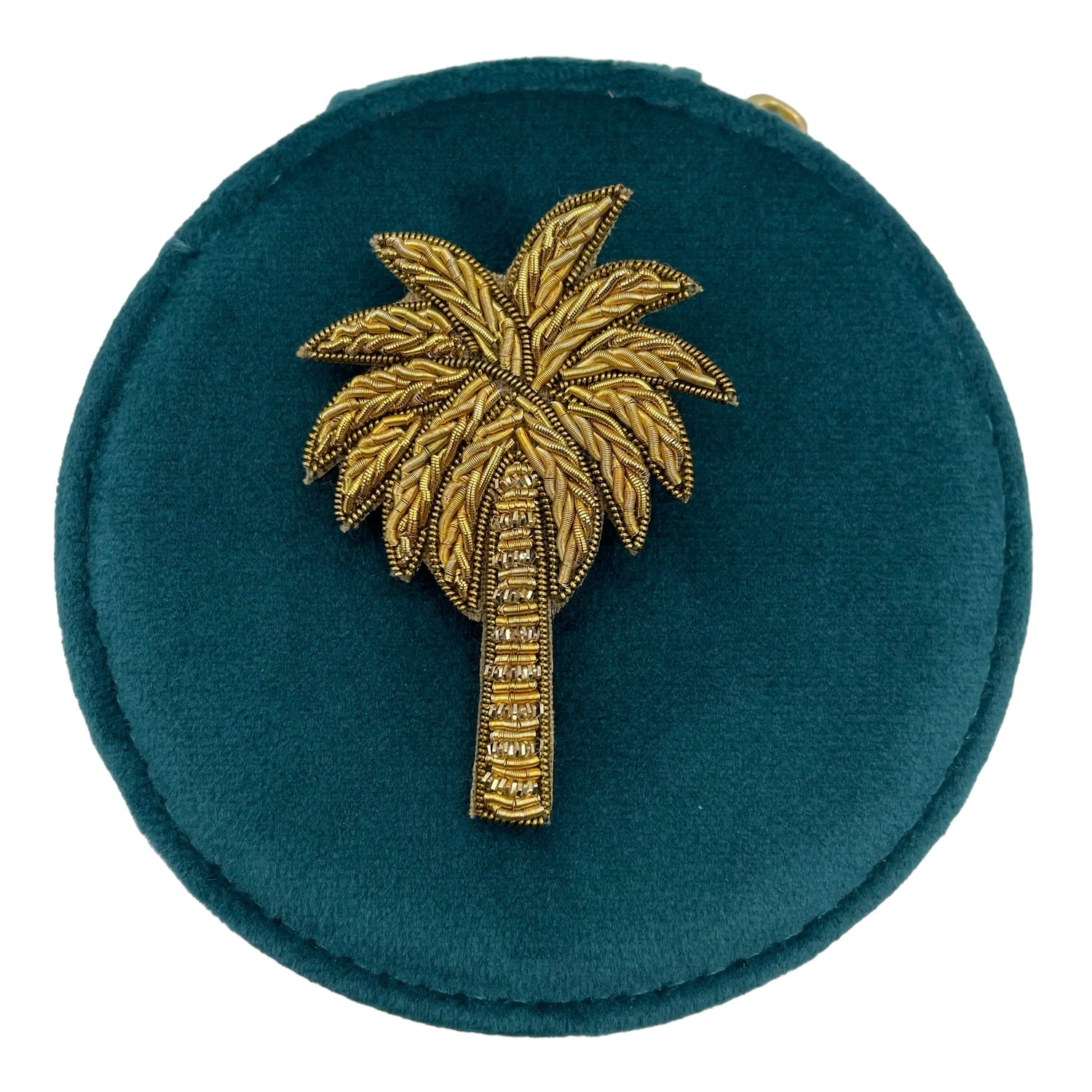 Jewellery Travel Pot in teal - Gold Palm Tree brooch