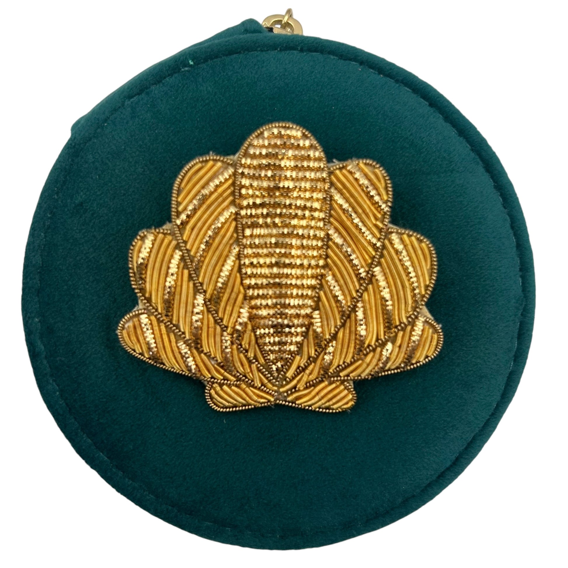 A jewellery travel pot, made from recycled materials with a detachable Shell brooch.