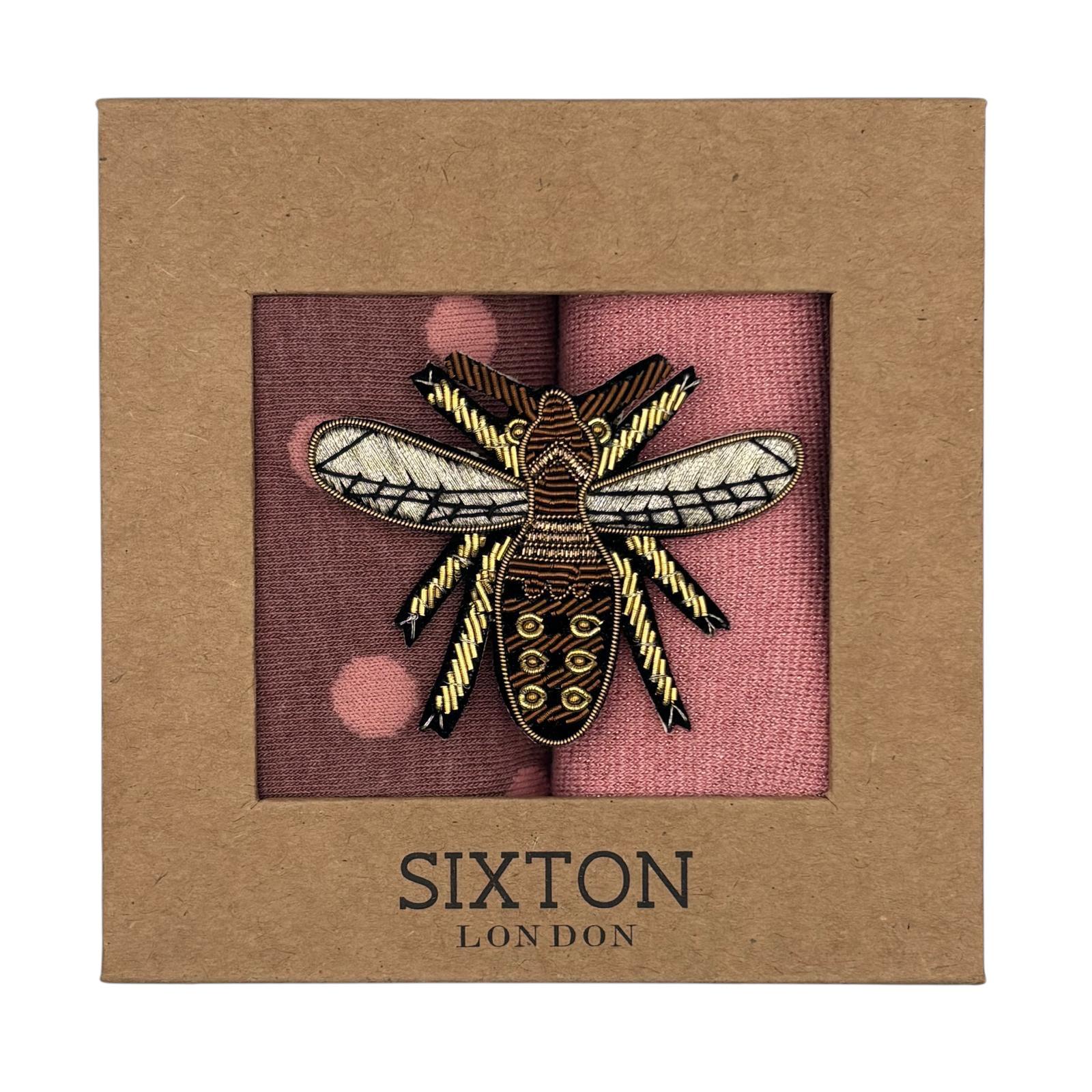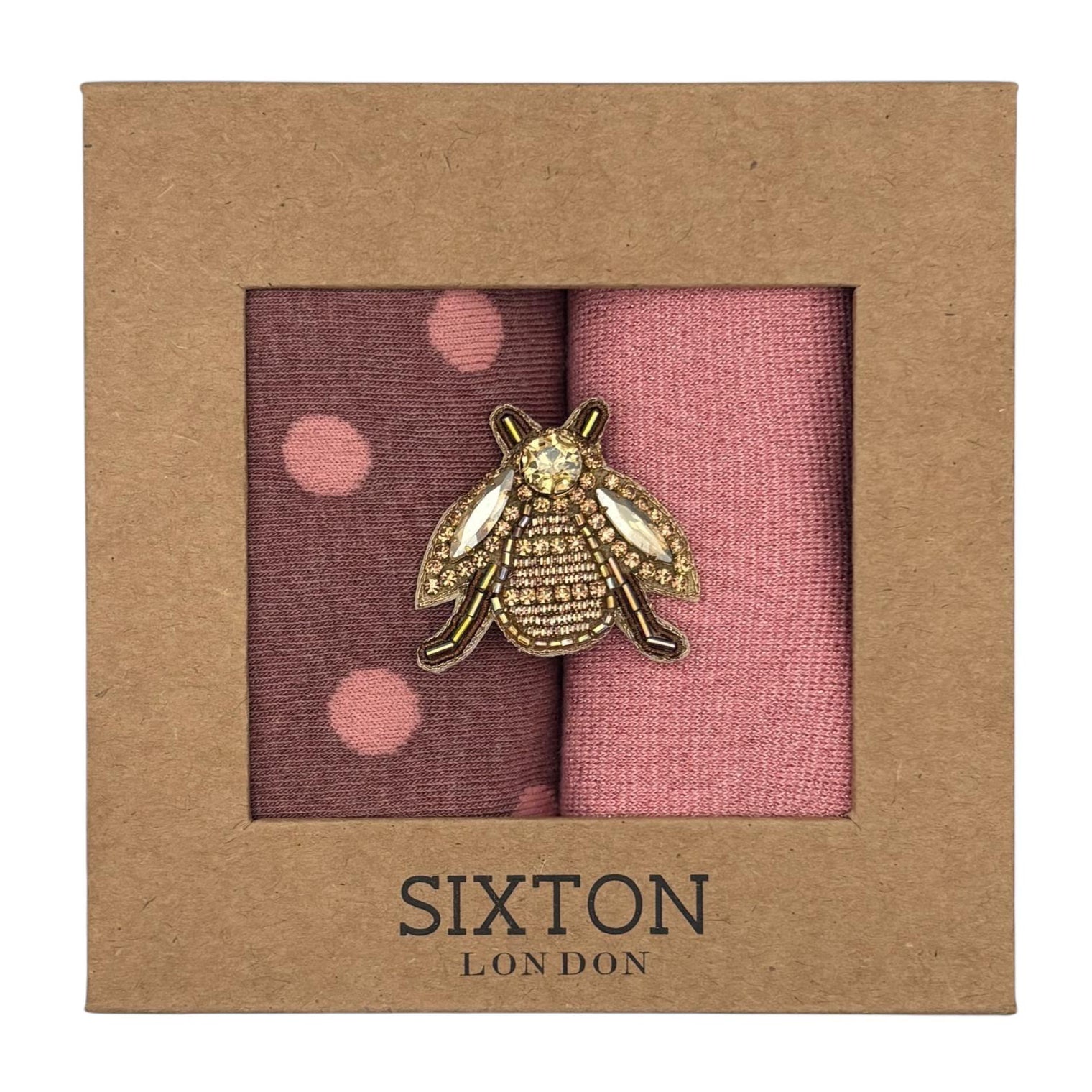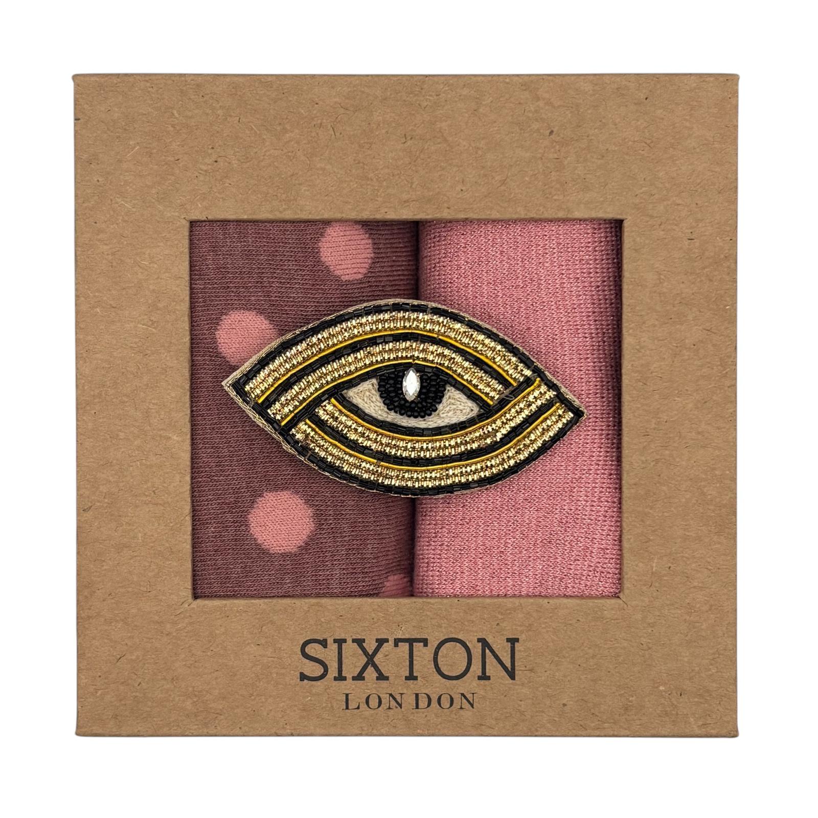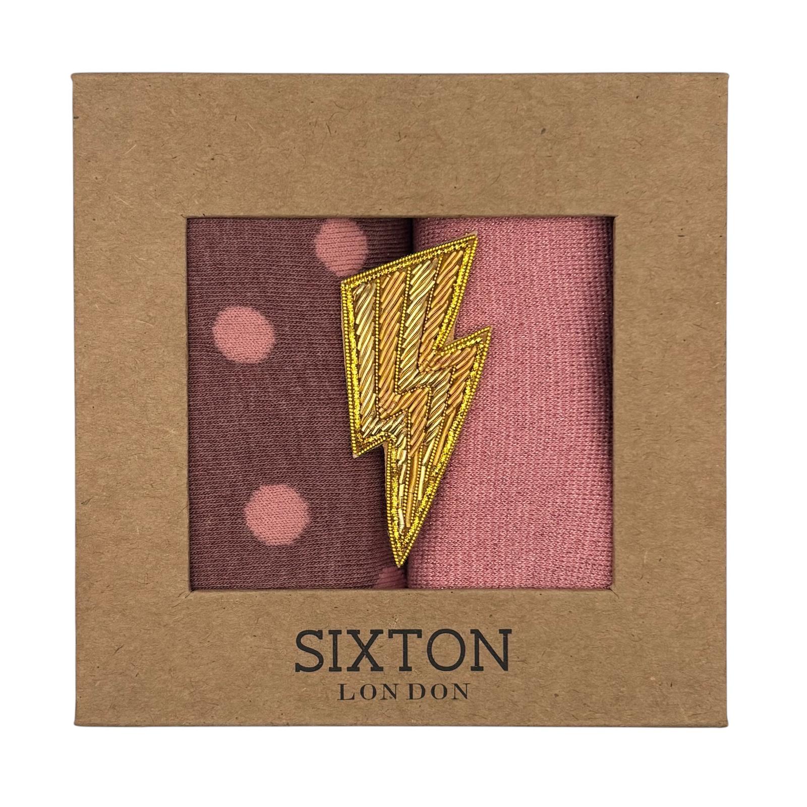 Pink Porto & Pale Pink Tokyo sock box duo with embroidered brooch