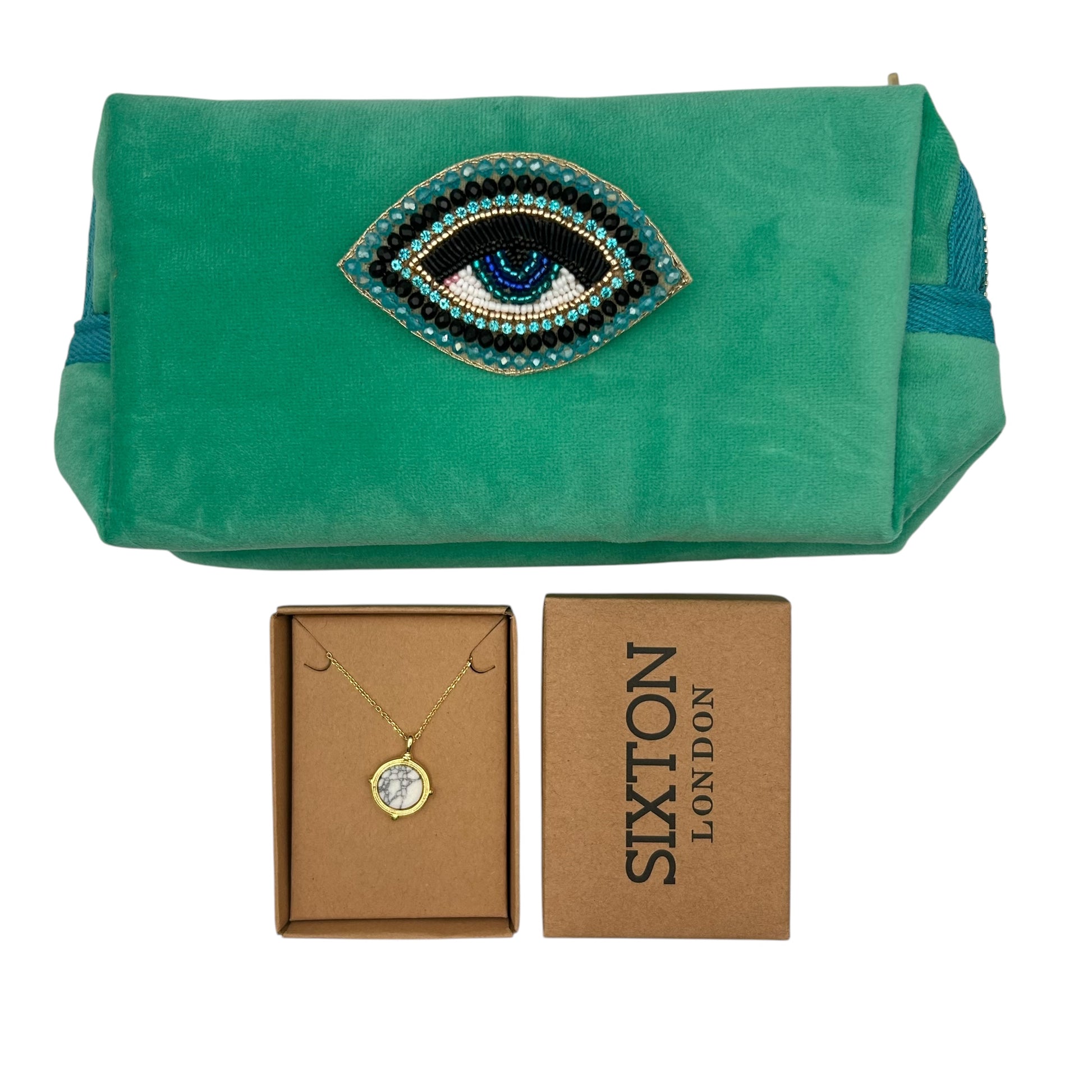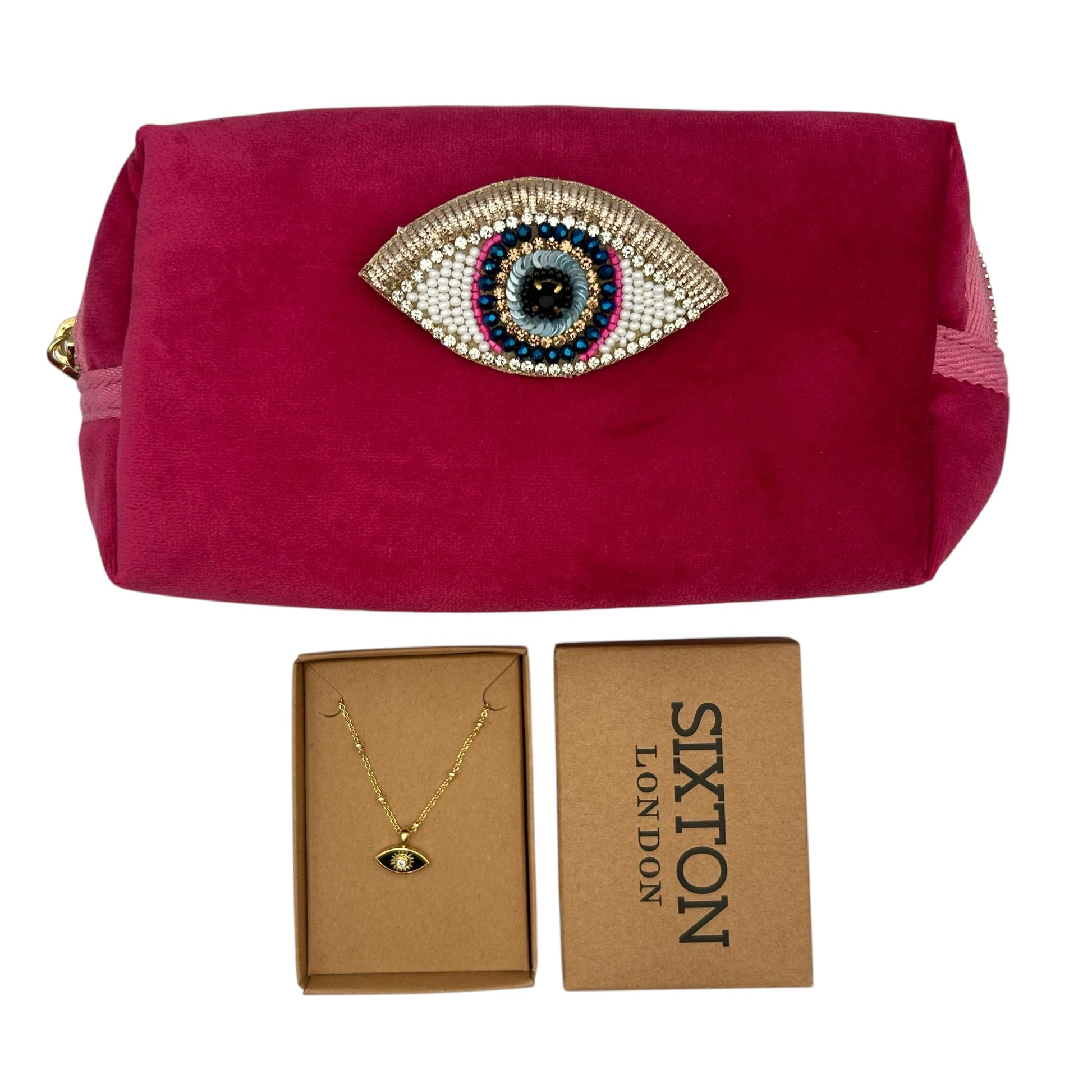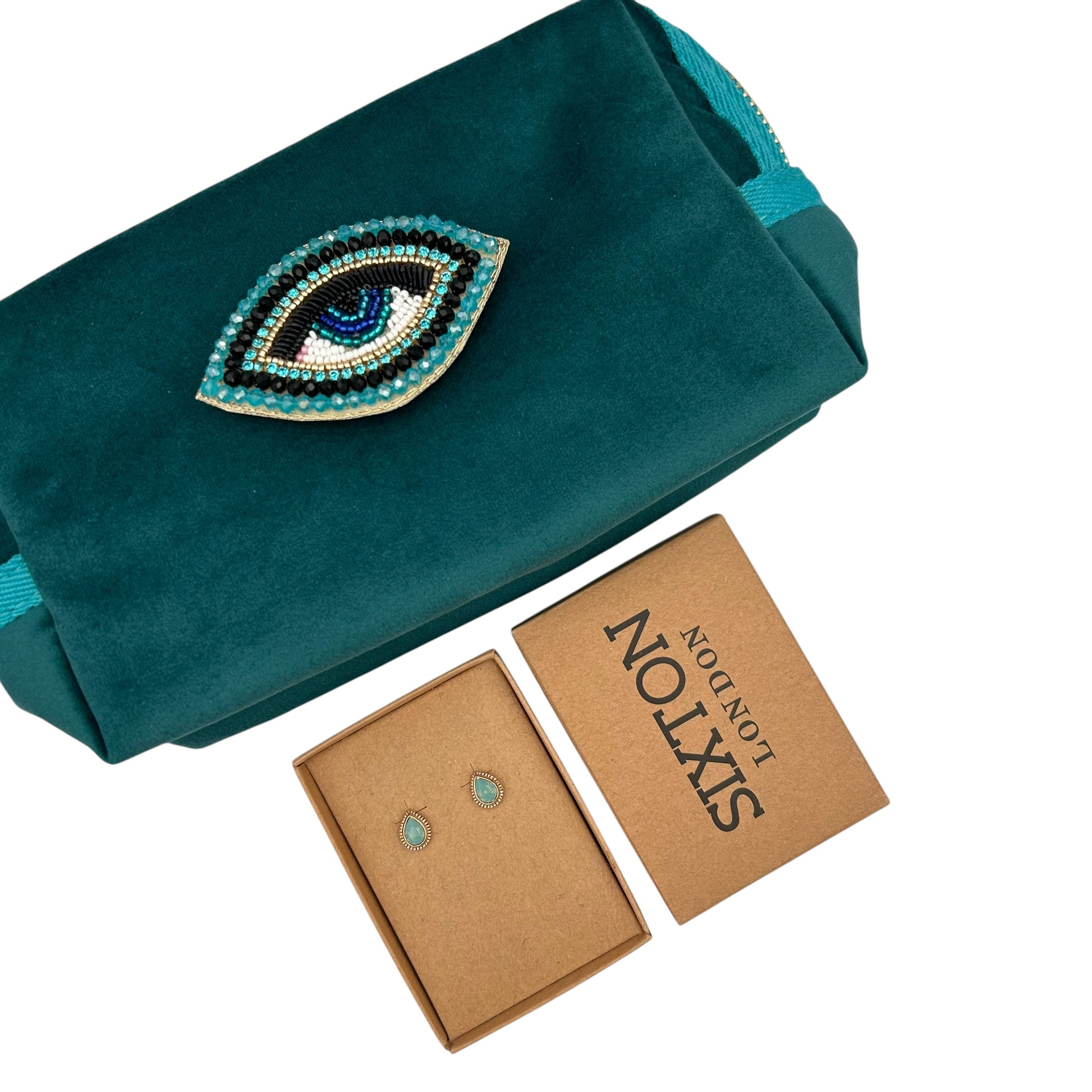 A small velvet makeup bag with a brooch - worth £24.99 and a necklace or pair of earrings - worth £18.99.