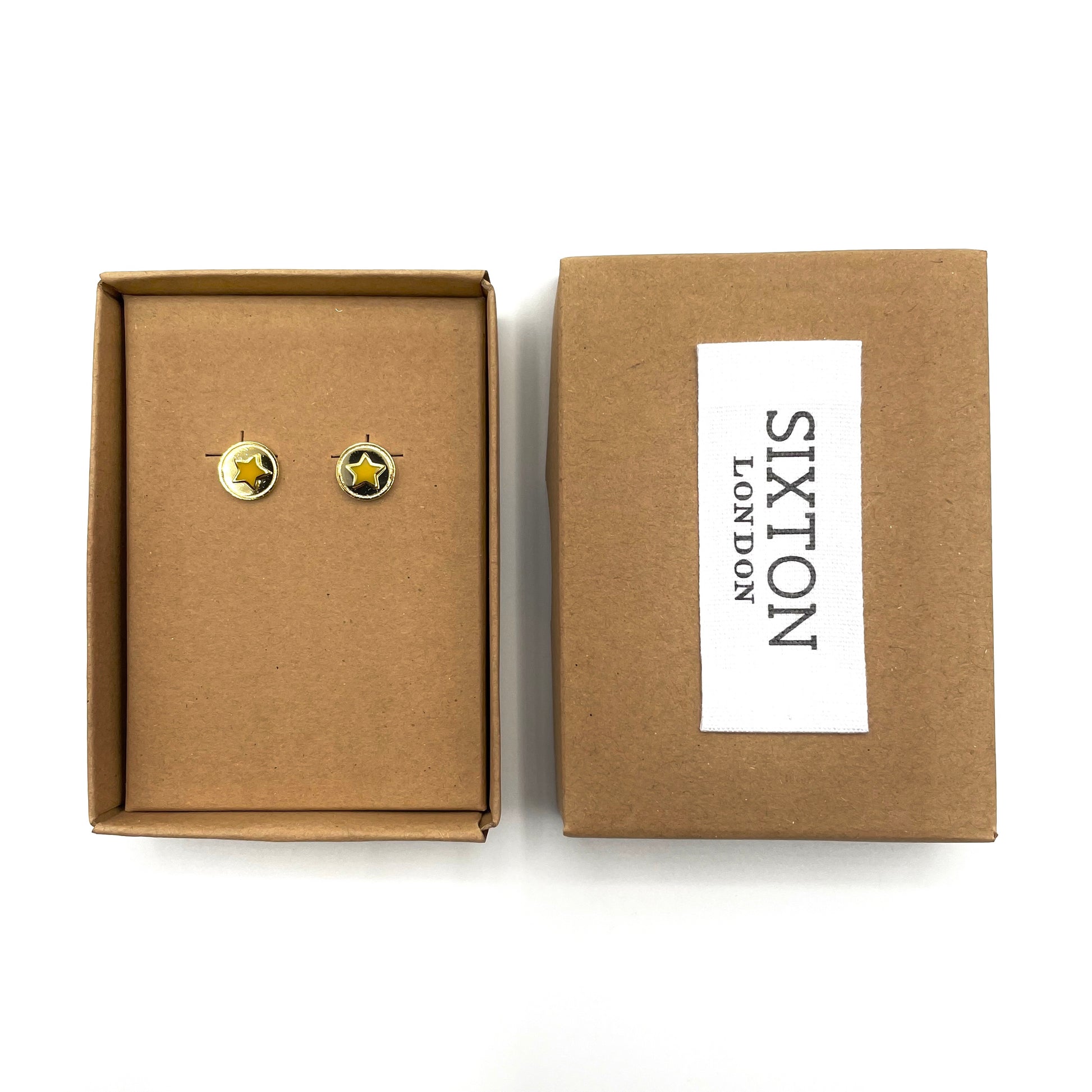 Add a bit of sunshine to your day, with these gorgeous stud earrings, with a raised yellow star design.